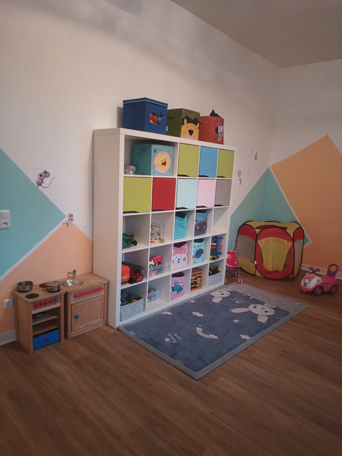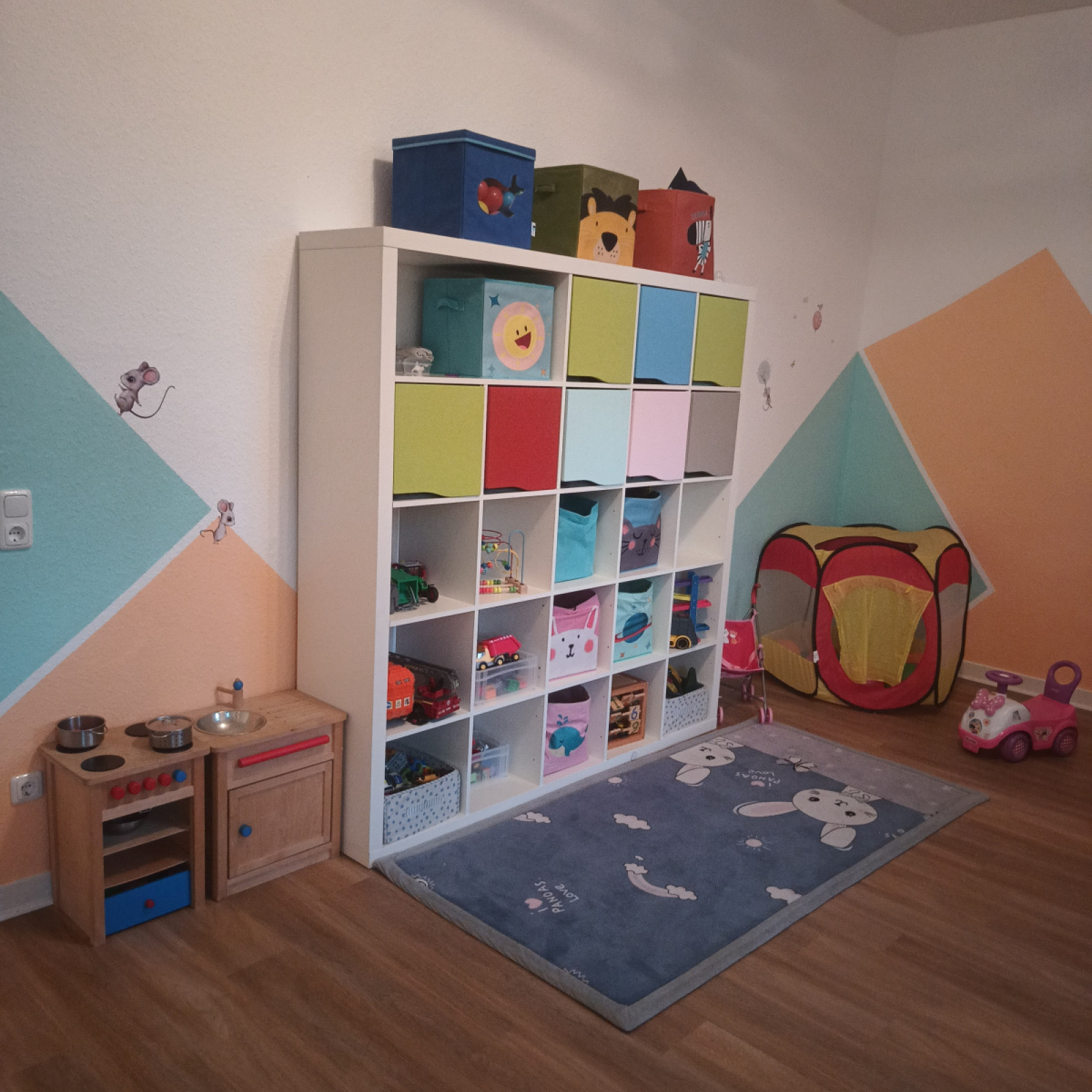 Die Räume sind kindgerecht eingerichtet und bieten auf rund 55 Quadratmetern viel Platz zum Spielen, Entdecken und Ausruhen. Ein Spielraum lädt zum Toben und Gestalten ein, ein Rückzugsbereich schenkt Ruhe, und im Schlafraum haben die Kinder in Schaumstoffkrippenbetten ihren festen Platz. Beim gemeinsamen Essen sitzen wir alle am Tisch, was nicht nur das Miteinander, sondern auch Selbstständigkeit und soziale Kompetenzen stärkt.