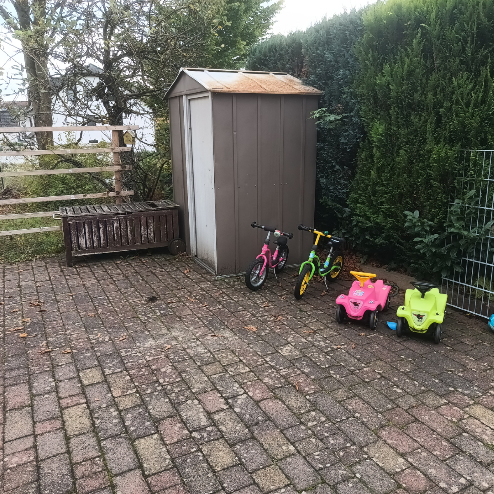 Schön ist auch unser eigener Hof, der den Kindern zusätzlichen Raum zum Spielen an der frischen Luft bietet. Ergänzt wird dies durch die ruhige Lage im Erdgeschoss des ehemaligen Pfarrhauses – verkehrsberuhigt, mit Spielplätzen in der Nähe und Parkmöglichkeiten direkt vor der Tür.